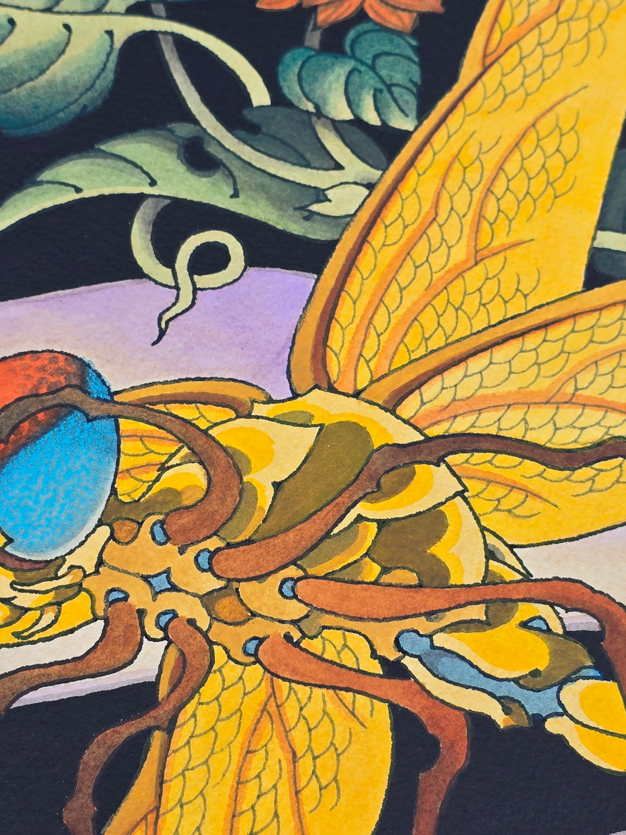 The Yellow Dragonfly, the passage between the stage of reflective introspection to outward active expression. This third layer is not often regarded in modernity, yet still exists in the sub layer on the path to wholeness. As a shadow under our feet, from where the other sun shines.